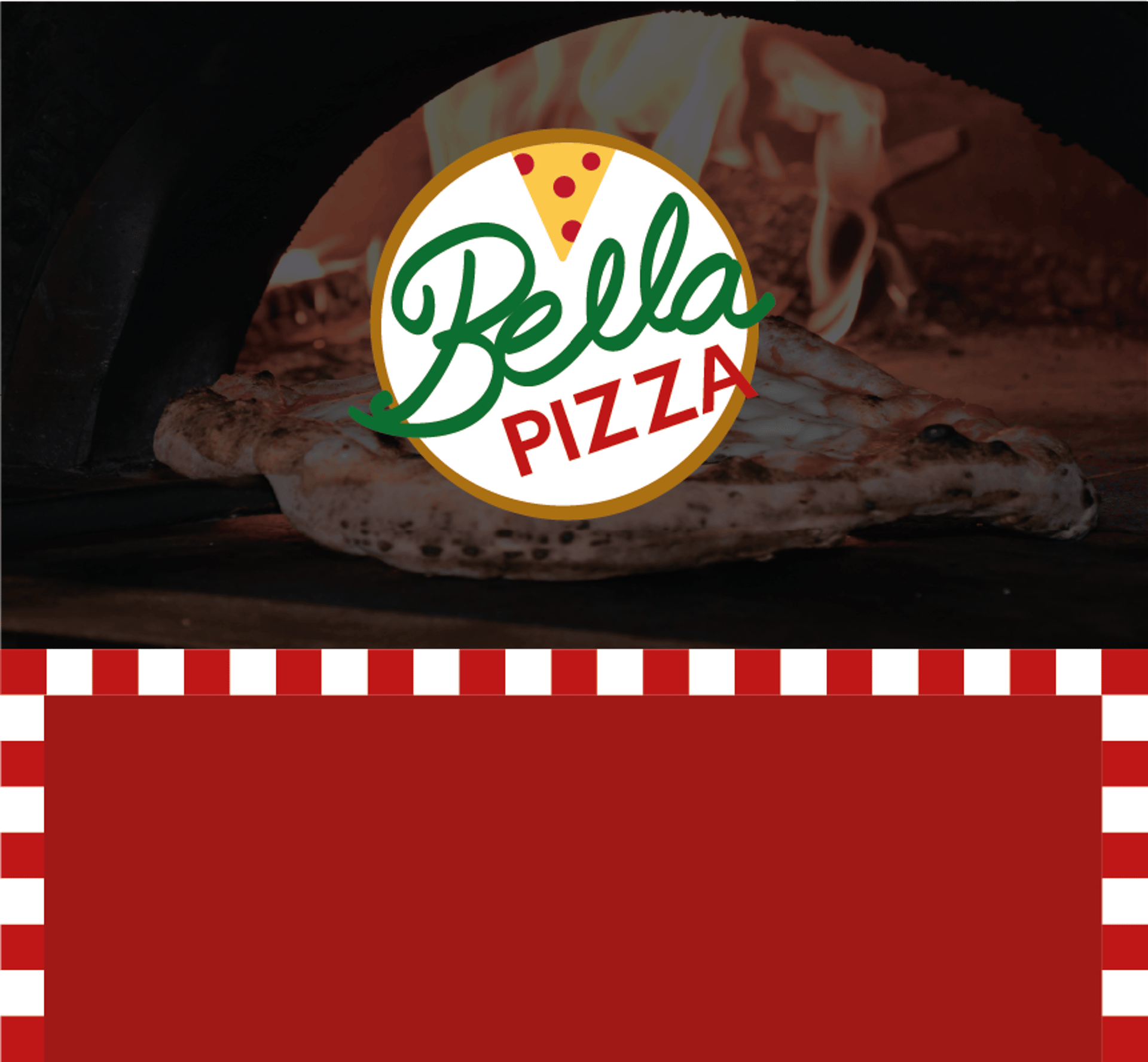 La typographie combine une écriture manuscrite pour "Bella", symbole de savoir-faire maison, et des lettres modernes pour "PIZZA", reflétant équilibre entre tradition et modernité.